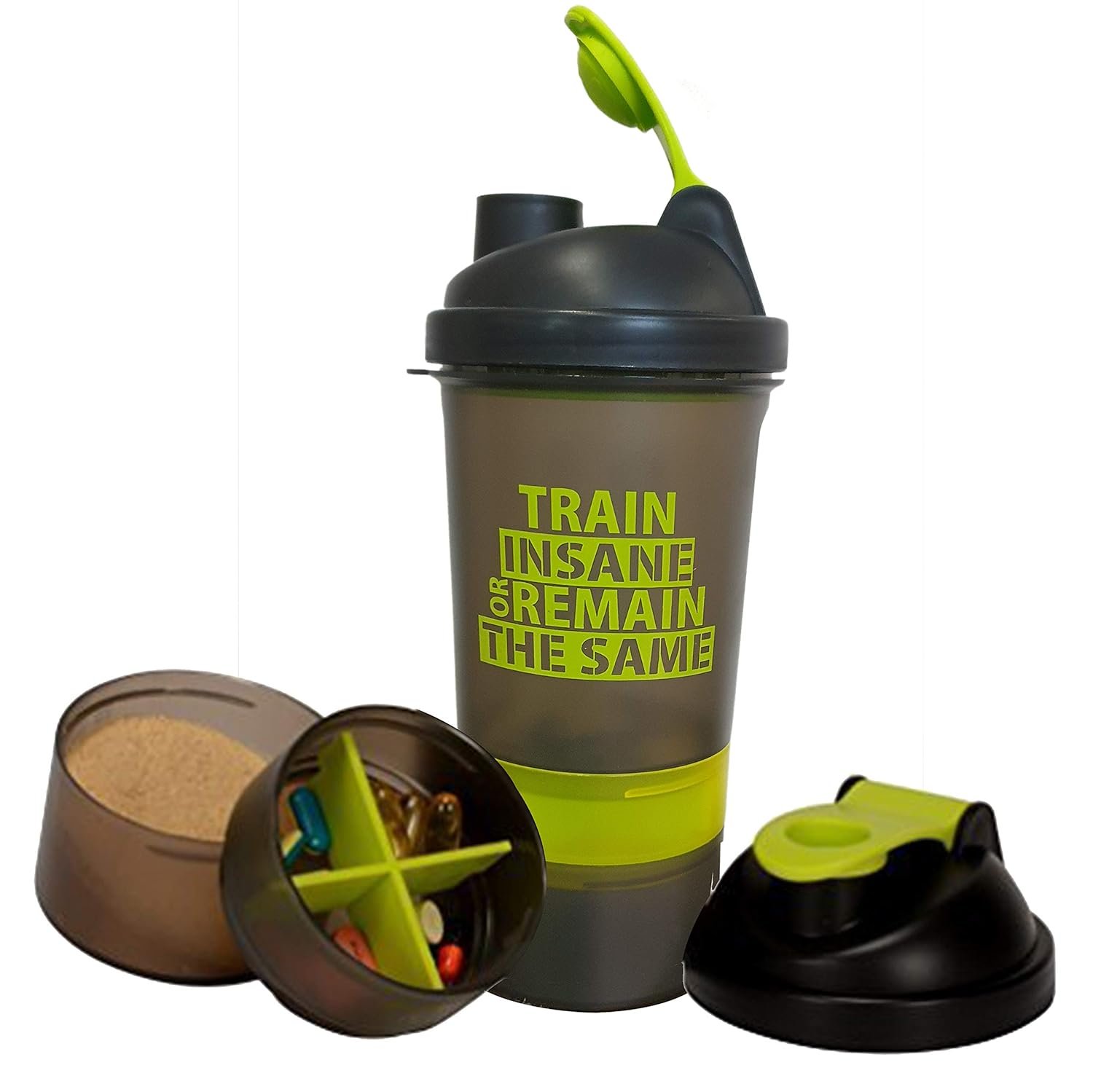 GHC Shaker Bottle is made from high quality food grade, non-toxic and 100% BPA Free material. It has two separate compartments in which you can easily store several servings of nutritional supplements, for example pre or post workout products, vitamins, capsules, or nuts and berries. It is beautifully designed for easy drinking and pouring.