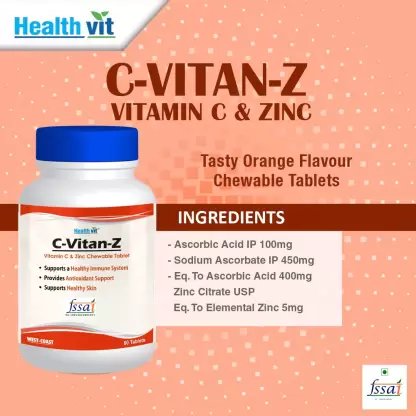 Healthvit C-Vitan-Z Vitamin C 500mg and Zinc – 60 Chewable Tablets Healthvit C-Vitan-Z Contains Vitamin C & Zinc Which support immune system health while supplying your body. [Ingredients:] Vitamin C and Zinc [Suggested Use:] Take one tablet daily, or as directed by a healthcare practitioner