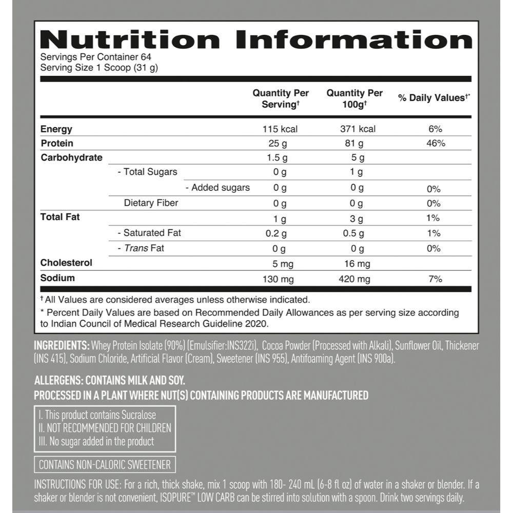 Pack in high-quality and delicious protein to support your daily nutrition needs. Now Iso Pure comes with added Vitamin A, C, E & Zinc to support immunity and added Biotin to support healthy skin & nails. Less than 1.5gm of carbs in sight with zero added sugar - Iso Pure has a whopping 25 grams protein, naturally occurring 5 grams BCAAs & 4 grams Glutamine per serving. It’s 100% whey protein isolate — and always without gluten, lactose or aspartame. Instantized for ease of use, mix up as a shake or make some seriously delicious dynamic recipes.