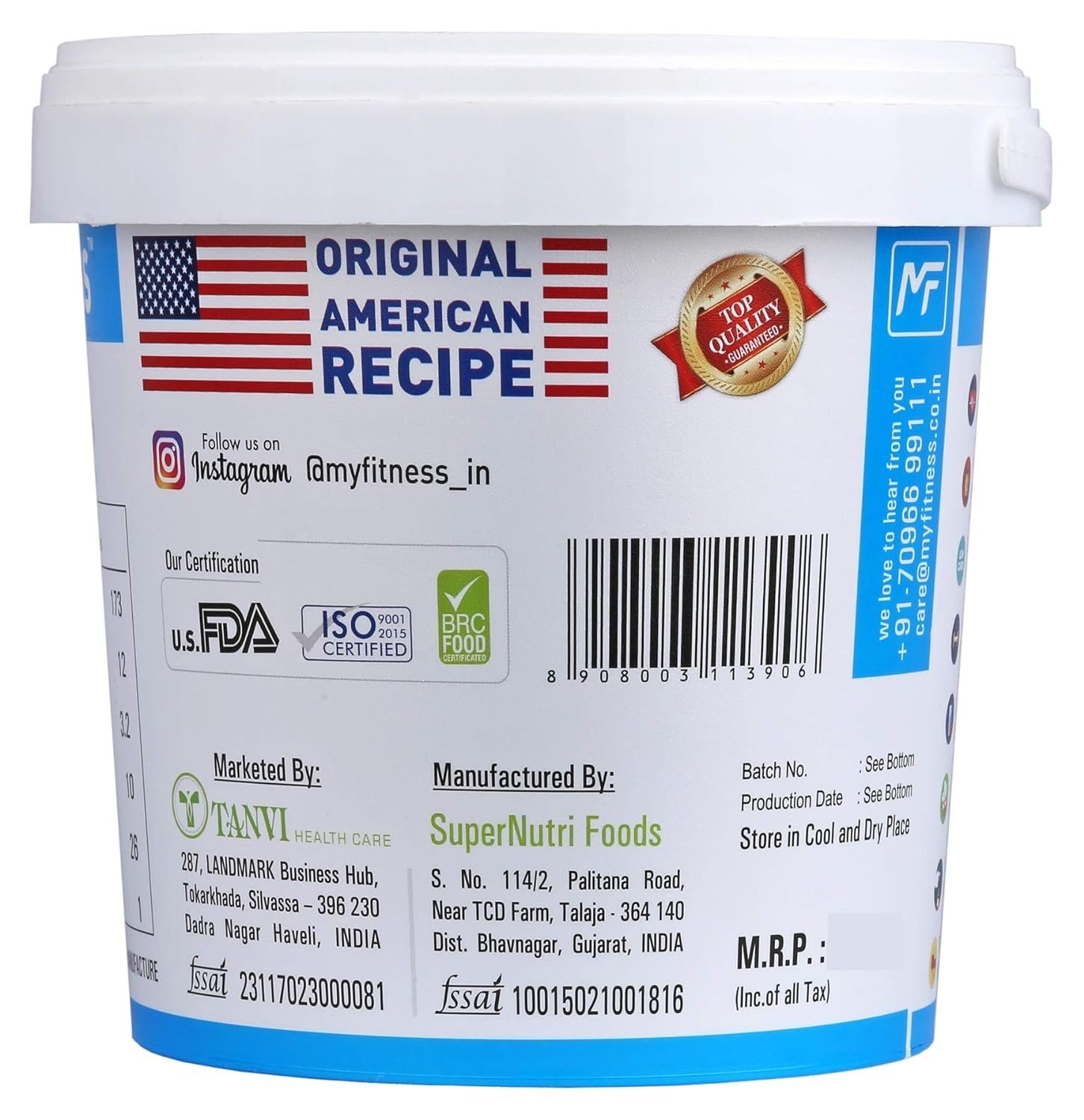 MYFITNESS Chocolate Peanut Butter 1250gMyfitness chocolate peanut butter is made of premium quality ingredients like selected peanuts and delicious cocoa. It is free from artificial colours. Myfitness helps a mom make breakfast healthier, tastier and making it more enjoyable for kids. It also offers a sensorial experience that allows a moment of joy for the family.MYFITNESS Peanut Butter Smooth 1250gChoice of champions, MYFITNESS Peanut Butter, manufactured at US FDA, UK BRC and ISO 9001:2015 registered facility for you, Made from high quality fresh peanuts, this MYFITNESS Peanut Butter is more than a breakfast companion. It is a high protein, nutritious and delicious treat whether used in recipes, as a spread on sandwiches or even when simply licked off a spoon. It is helps you achieve your body goal or helps winning championships.