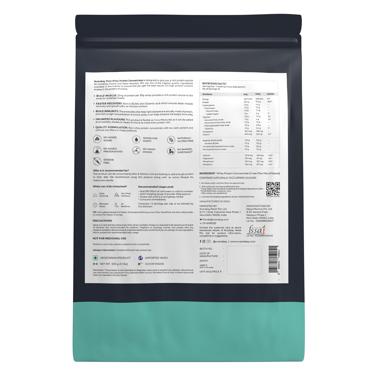 Nutrabay Pure 100% Whey Protein Concentrate is designed to give you a rich protein source for building muscle and faster recovery. We use one of the highest quality ingredients available in the market to ensure that you get the best results. It's high protein content makes it the protein of choice.